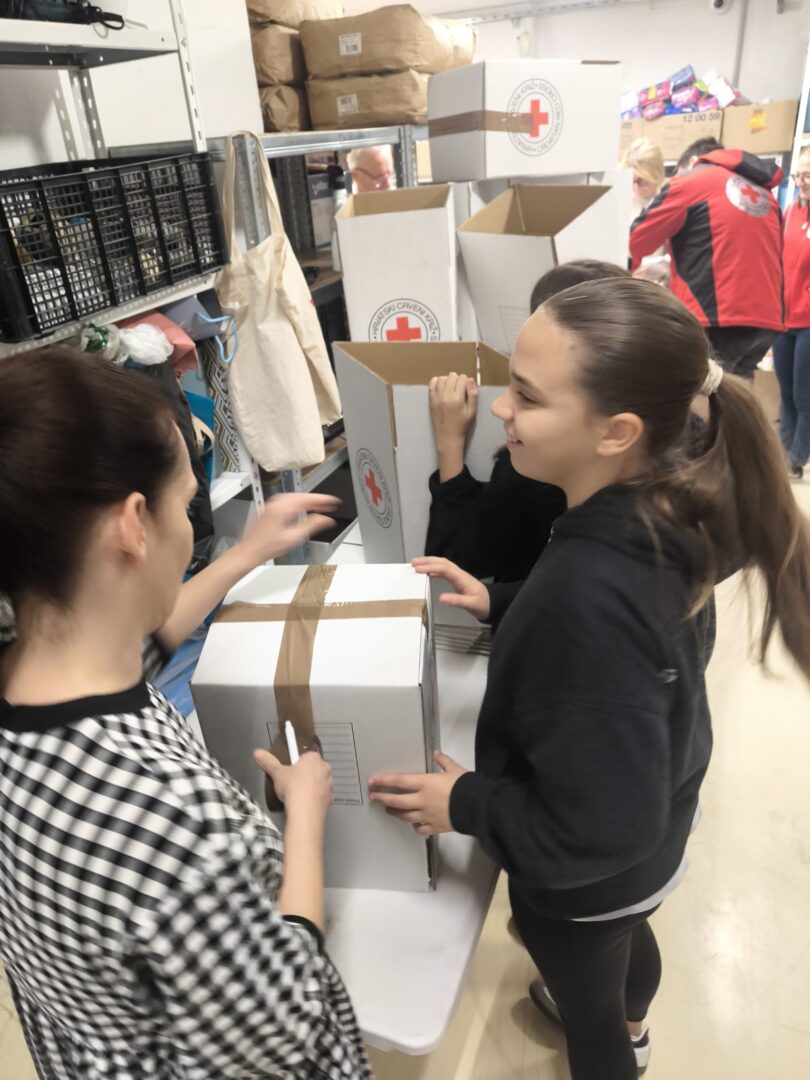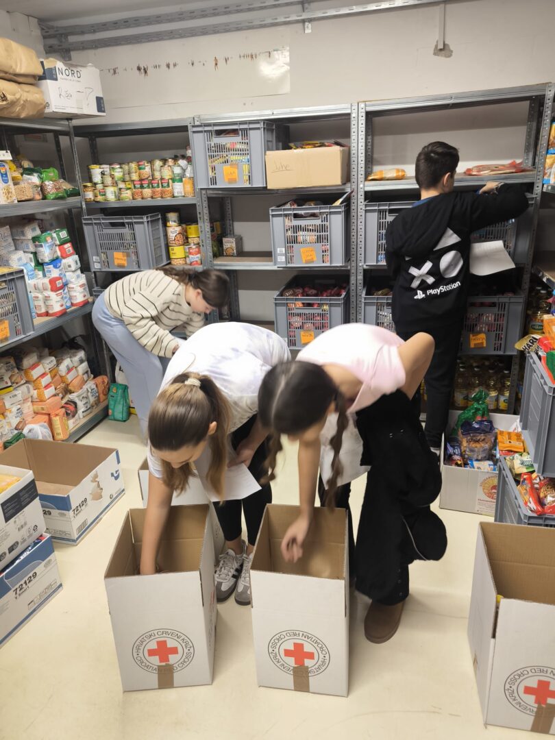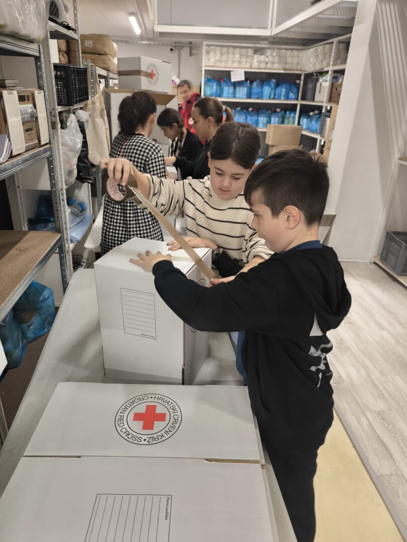 Pod vodstvom učiteljica Tine Ivelje i Vedrane Šilović, vrijedni učenici — Lota Mrkonjić, Marko Šišević, Petra Prgomet i Marta Pavela — svojim su radom pripremili čak 105 paketa pomoći!