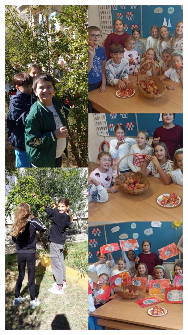 Učenici 1. a sa svojim učiteljicama razvijali su slastičarske vještine- pripremali su štrudlu od jabuka.  U 1. b jabuke su bile tema priče koju su pričali po nizu slika te motiv likovnih radova. U matematičkom zadatku trebali su prikazati slikom broj jabuka koji se spominje (brojevna riječ i količina).
