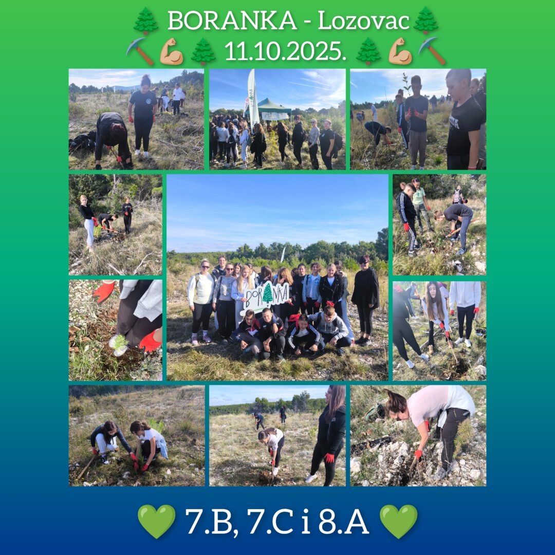 Učenici 7. a i 7. b, u pratnji učiteljica Zrinke Banić, Danijele Radić i Vedrane Šilović, sudjelovali su u četverosatnom sijanju žireva hrasta crnike te se pritom dobro zabavili.